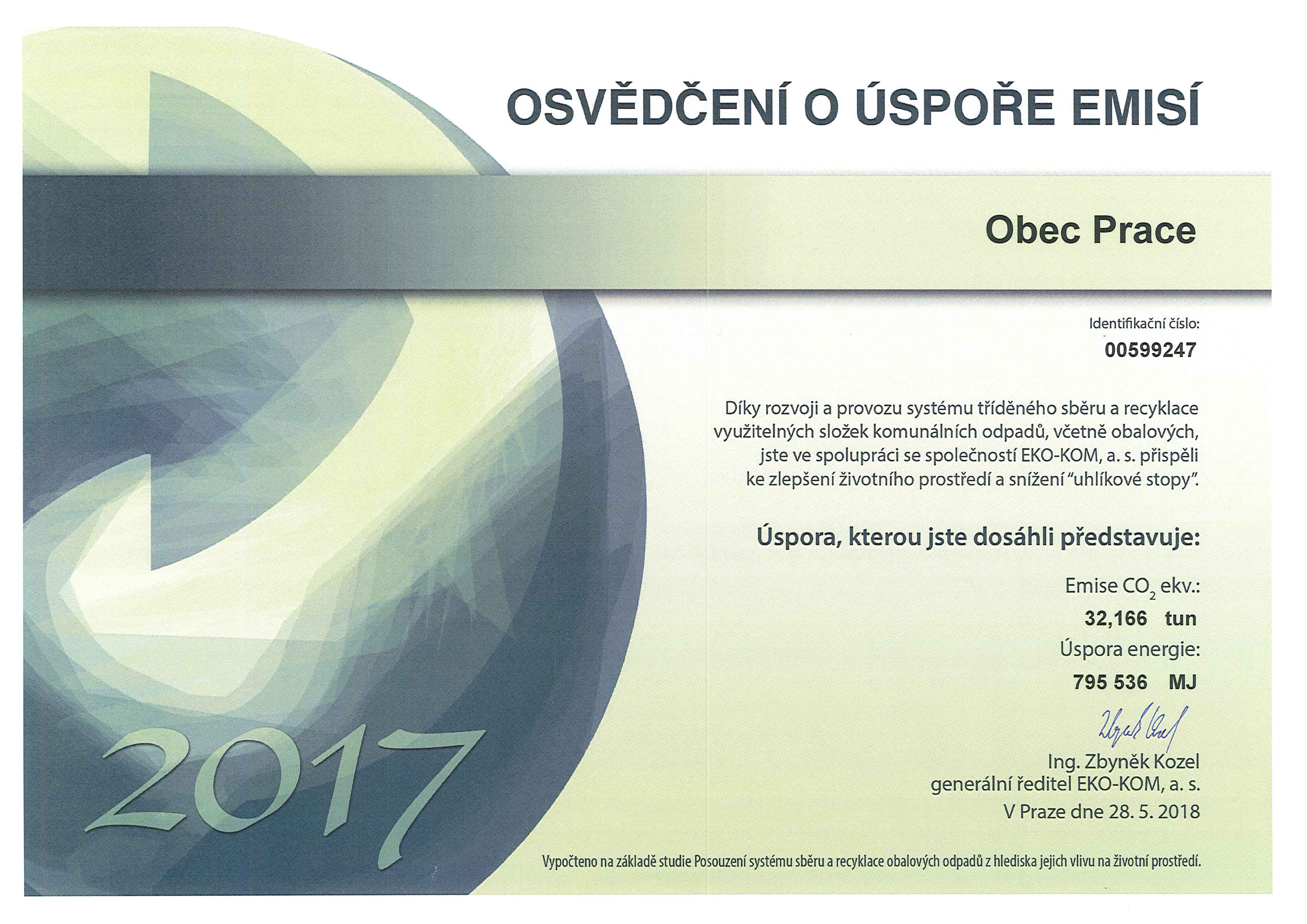 Od roku 2011 je v obci Praci zřízeno sběrné místo, kam mohou občané odevzdávat nepotřebnou elektroniku, televizory, monitory, velké i malé spotřebiče, zářivky, baterie apod.,