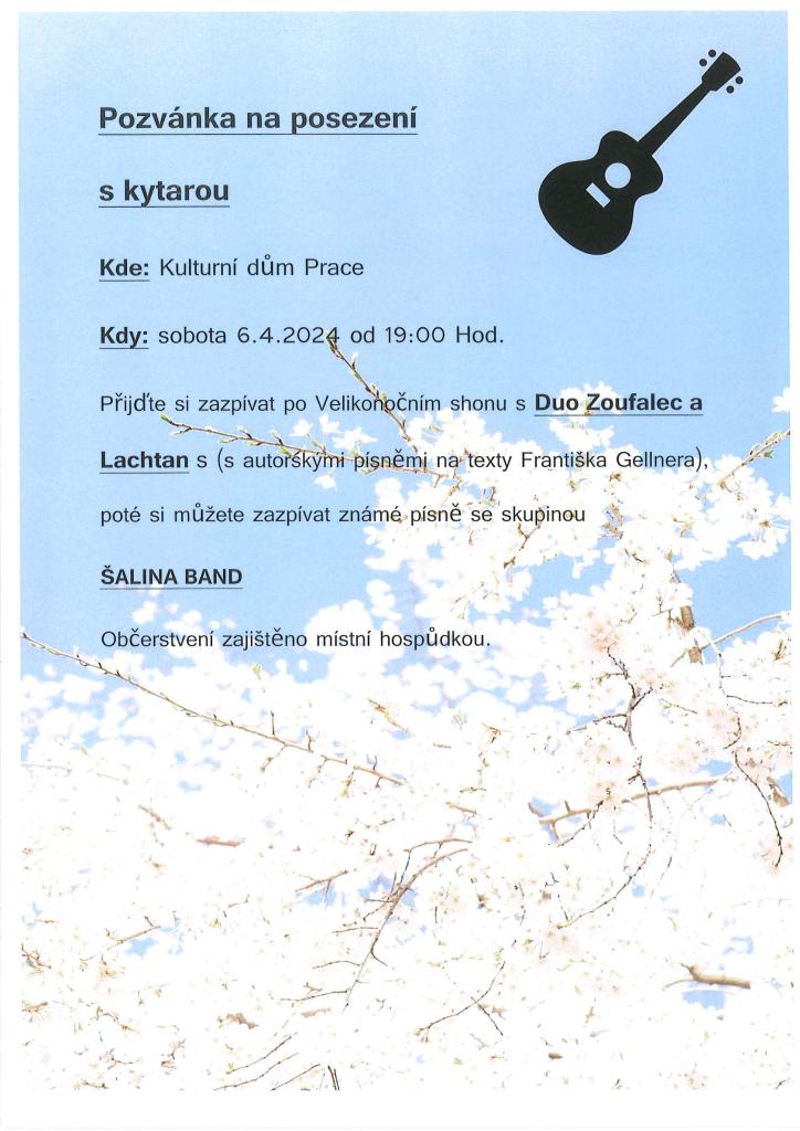Hudební večer s autorskými písněmi na texty Františka Gellnera, poté si můžete zazpívat známé písně se skupinou Šalina band